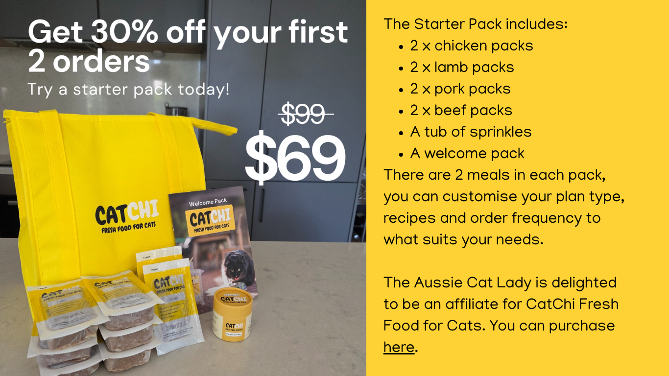 CatChi is the first Australian fresh food for cats. It’s gently cooked and frozen. Their meals only use human grade ingredients. that are 95%+ meat, with recipes developed in collaboration with veterinary professionals.